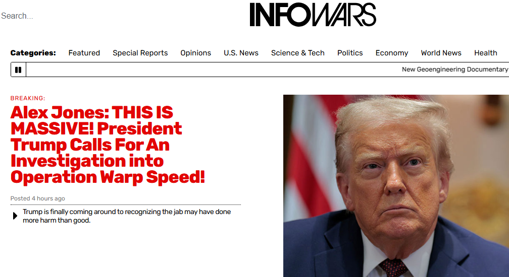 InfoWars spreads BS about Trump investigating Warp Speed